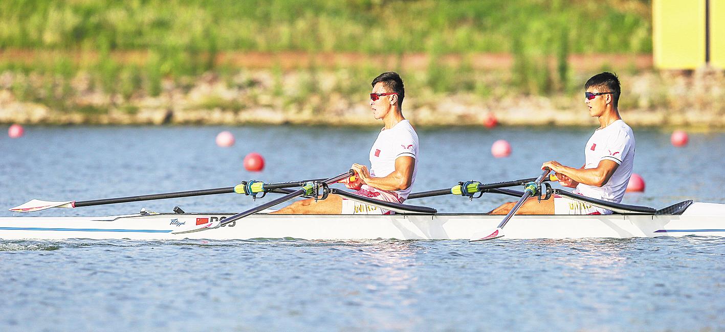 国家队男子赛艇双人双桨训练。(湖北日报全媒记者 时龚 见习记者 胡雨薇 摄)