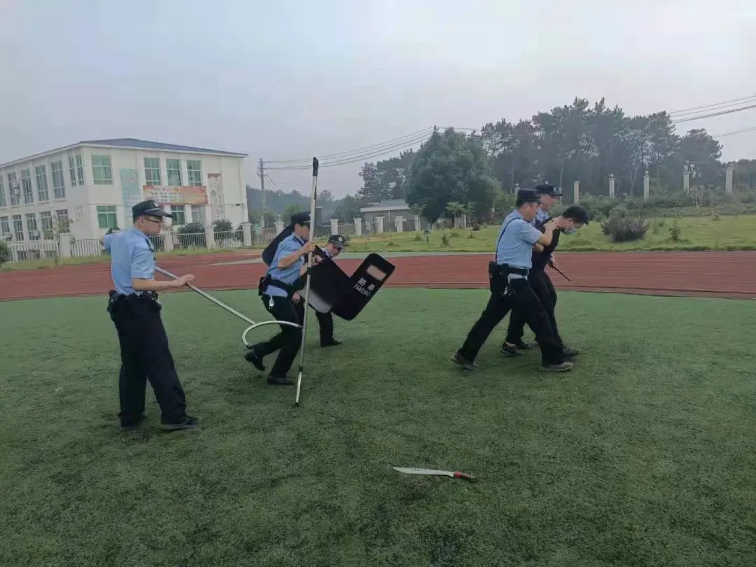 6月22日上午,鄂州梁子湖区公安分局沼山派出所,在沼山镇海博实验小学举行反恐防暴应急实战演练,提高校园安保力量的防护和实战水平。