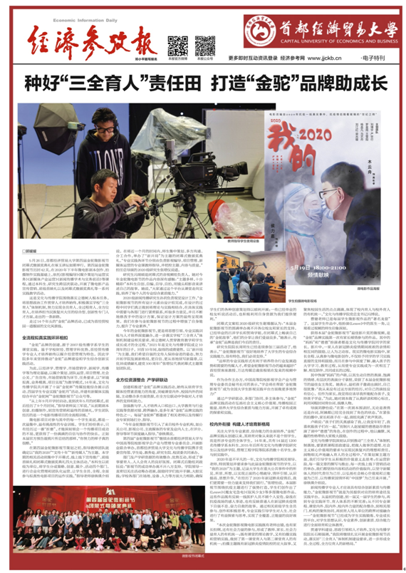 “金驼”品牌的创建,源于2007级传播学系学生的课堂实践。基于学校财经、管理学科优势,首经贸传播学专业人才培养始终以媒介经营管理为特色。因此学院多年来坚持推动“金驼”品牌建设和学生综合创新实践活动。