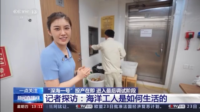 总台央视记者 郑子可:“深海一号”能源站,分为生活区和生产区两个区域,今天我们来探访的地方,是生活区的餐厅以及后厨。