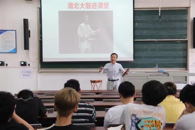 湖北日报讯(记者方琳、通讯员许璐)6月24日上午10时,武汉音乐学院滨江校区教学楼,湖北大鼓国家级非遗传承人、国家一级演员、湖北省曲协副主席付群刚以《传承非遗技艺,体验大鼓魅力》为题,上了一堂别开生面的党史课。
