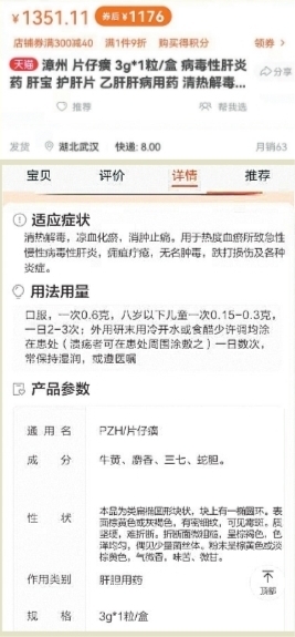 在一家线上药店,其片仔癀价格达到了1351.11元1粒,按克计算,单价为450.37元/克,已经远远超过6月24日上海黄金交易所黄金报价370.35元/克。