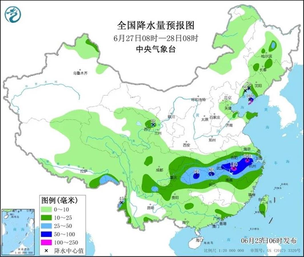 不仅是湖北遭遇强降雨,中央气象台最新预报,预计未来一周(6月26日至7月1日),我国南方地区将出现入汛以来最强降雨过程,浙江、福建、安徽、湖北、江西、湖南、广西、四川、重庆、贵州、云南等超过10省(市区)将出现大范围强降雨,上述部分地区累计雨量将达到100-300毫米,局地超过400毫米。