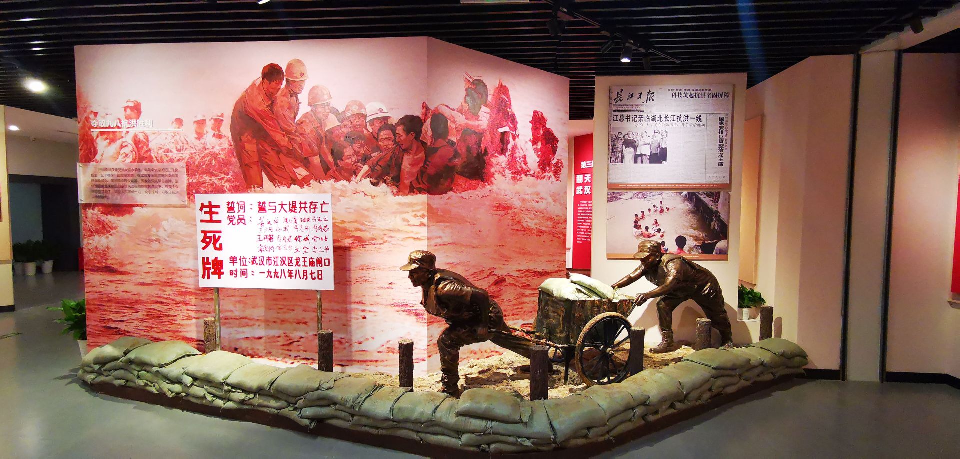为丰富展陈的观赏性,展览综合运用图片、文字、多媒体、人机互动、艺术场景等多种表现形式,精心设计制作了13处辅助展项,如“武汉共产党早期组织成立”“红色战士公墓”“九八抗洪”等重要内容,力图多维度全景纵深式地展现武汉的历史高光时刻。