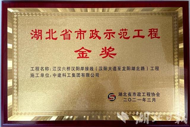 湖北日报讯(通讯员宋涛、黄锋)近日,由中建科工武汉分公司参建的江汉六桥汉阳岸接线工程荣获“2020年湖北省市政示范工程金奖”。同时,该工程还荣获全国建设质量管理小组活动成果交流会Ⅱ类成果奖、湖北省工程建设QC小组活动成果一等奖、武汉市工人先锋号、武汉市市政工程金奖等奖项。