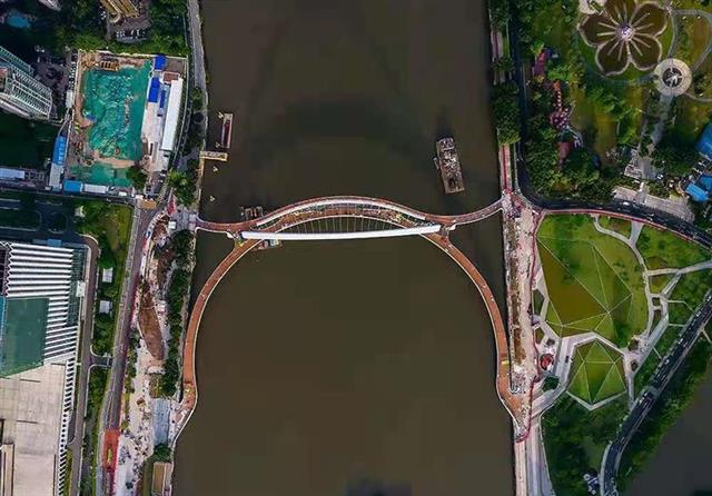 湖北日报讯(记者林晶、通讯员段宏杰)6月25日,广州人行景观“网红”桥——海心桥正式开通,珠江两岸实现了慢行通道互联互通。该桥为世界上最大跨度曲梁空间拱组合体系景观人行桥,在鄂央企中铁科工集团参建。