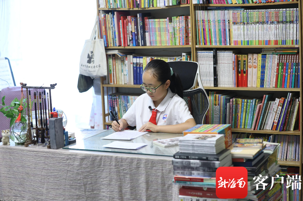 董泓希是海口中学小学部四(2)班的学生,小小年纪的她,有着有别于其他同龄儿童的沉静。