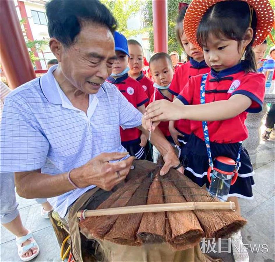 昨日,宜都市红花套镇幼儿园40余名师生来到远近闻名的“扫把村”,上了一堂别样的劳动课。劳动课上,讲解员向大家讲解“扫把村”的历史由来,详细介绍棕片、尼龙绳、竹竿、扫帚等物件。71岁周长全老人现场表演扎扫帚,并不时让孩子们学着穿针引线,让孩子体验劳动的乐趣。上世纪八九十年代,红花套镇杨家畈村家家户户扎制棕扫把,年产扫把超过2000万把,赢得了“扫把村”的美誉。