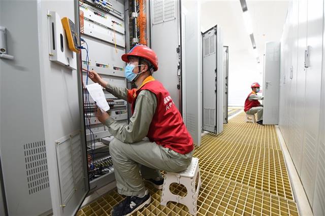 湖北日报讯(通讯员邹小民)6月28日,在武汉市新洲区与黄冈市红安县交接处的武汉±800千伏换流站内,国网湖北省电力有限公司正紧张有序推进500千伏交流系统带电调试工作,为下一步换流站双极低端直流系统调试按时开展打下坚实基础。