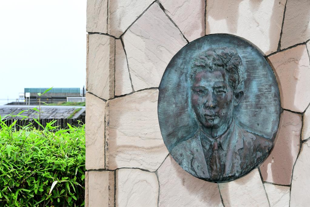 6月16日在日本神奈川县藤泽市聂耳纪念广场拍摄的聂耳头像浮雕。新华社记者华义摄