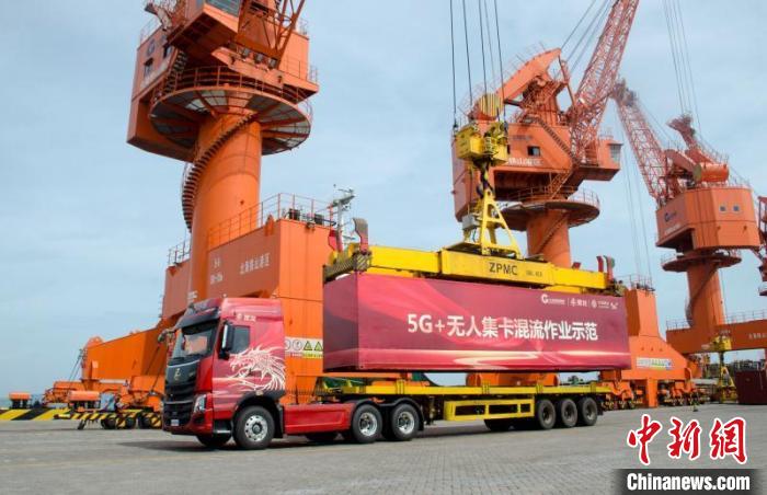 5G+无人驾驶集装箱卡车作业演示。 翟李强 摄
