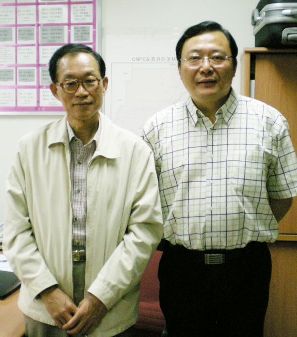 2008年5月7日,刘贵今(左)在外交部办公室会见长江日报记者余熙。余熙供图