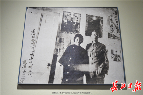 瞿秋白、杨之华夫妇在中共五大开幕式后的合影。长江日报记者胡冬冬 翻拍