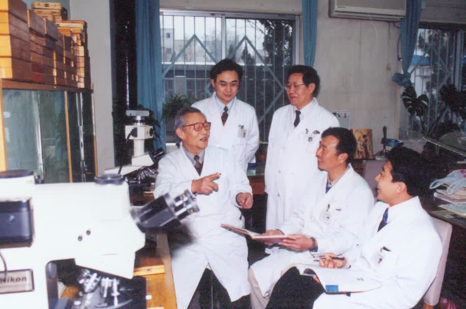 辛育龄在指导博士生的实验工作。图/光明日报