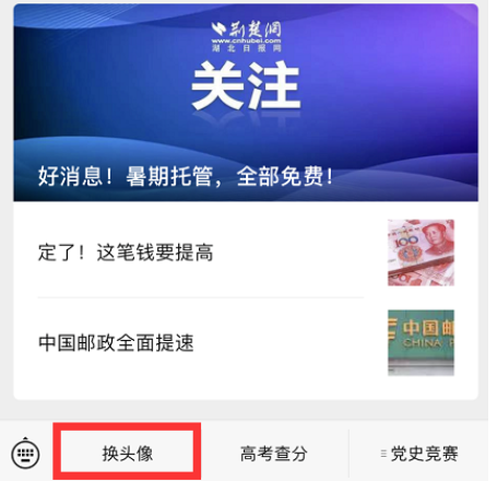 步骤二:点击菜单栏【换头像】,即可一键获取专属头像;也可以直接回复关键词【换头像】。