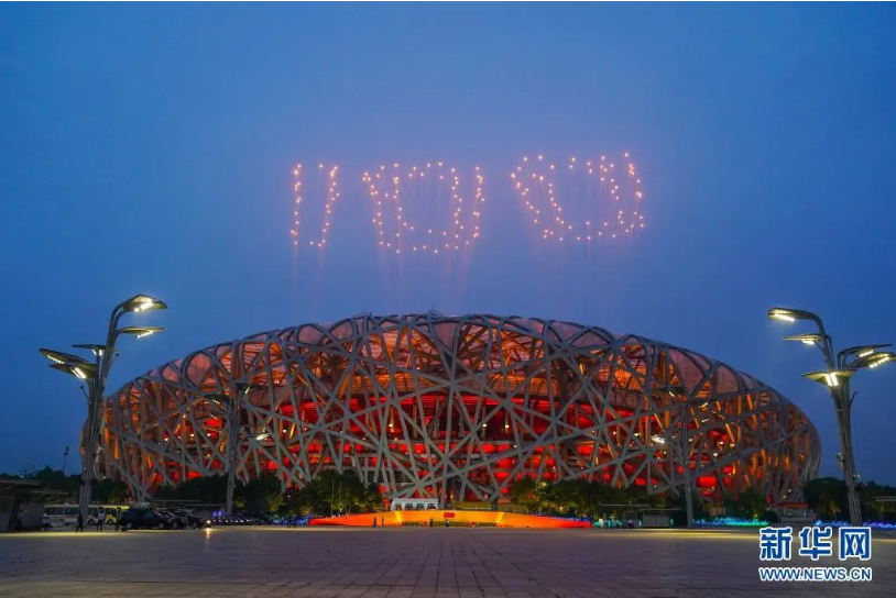 6月28日晚,庆祝中国共产党成立100周年文艺演出《伟大征程》在国家体育场盛大举行。这是焰火盛放在国家体育场上空。新华社记者 彭子洋 摄