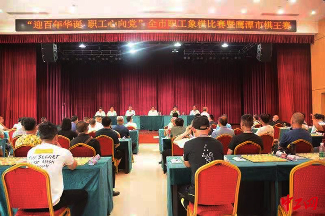 中工网讯 6月26至27日,“迎百年华诞·职工心向党”全市职工象棋比赛暨鹰潭市棋王赛在市工人文化宫举办。鹰潭市人大常委会副主任,市总工会主席胡高堂出席并宣布开幕。