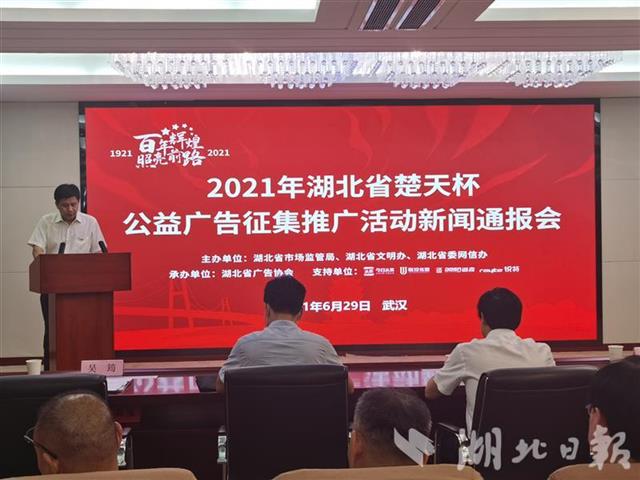 湖北日报讯(记者林晶、通讯员郭姗姗、胡开)6月29日,2021年湖北“楚天杯”启动“百年辉煌 照亮前路”主题公益广告征集推广活动,首设大学生创新创意奖和大众关注奖。即日起至9月20日,所有热心公益广告的团体和个人均可参加,可通过“湖北省公益广告”平台报送作品。