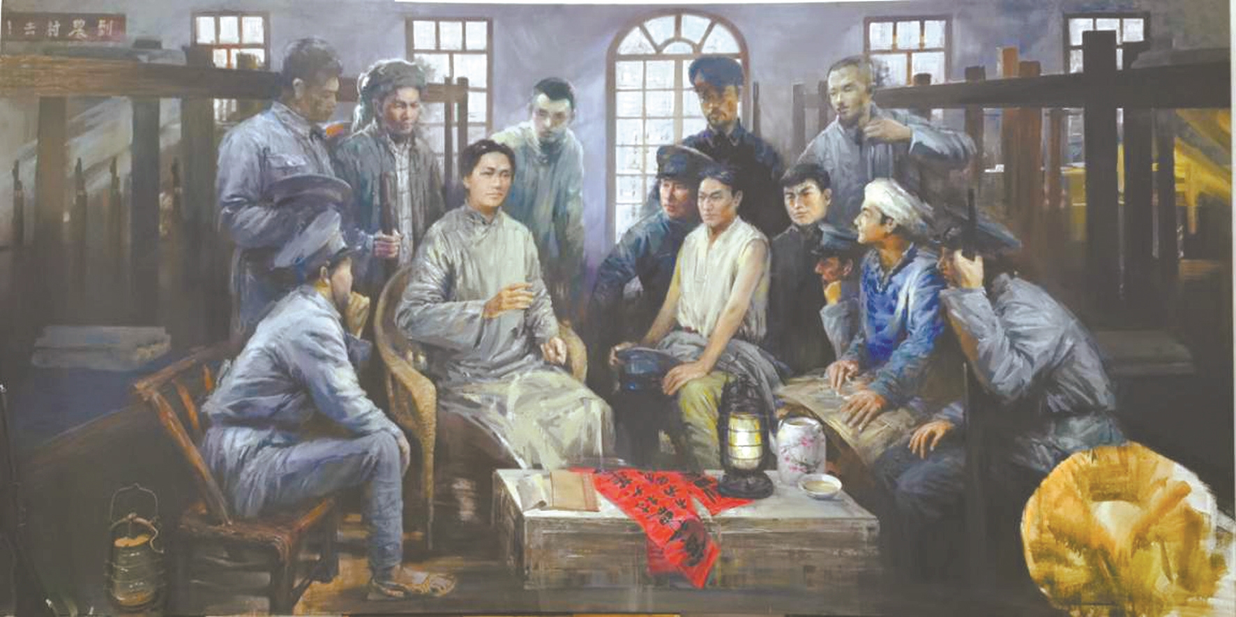 “永恒记忆·不朽丰碑——湖北党史重大历史题材美术作品文献展”作品之一《火种》。