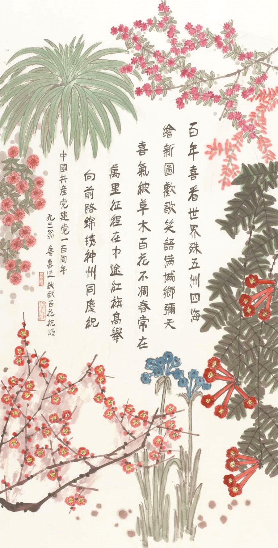 “庆祝中国共产党成立100周年——‘百花向阳开’鲁慕迅作品展”作品。