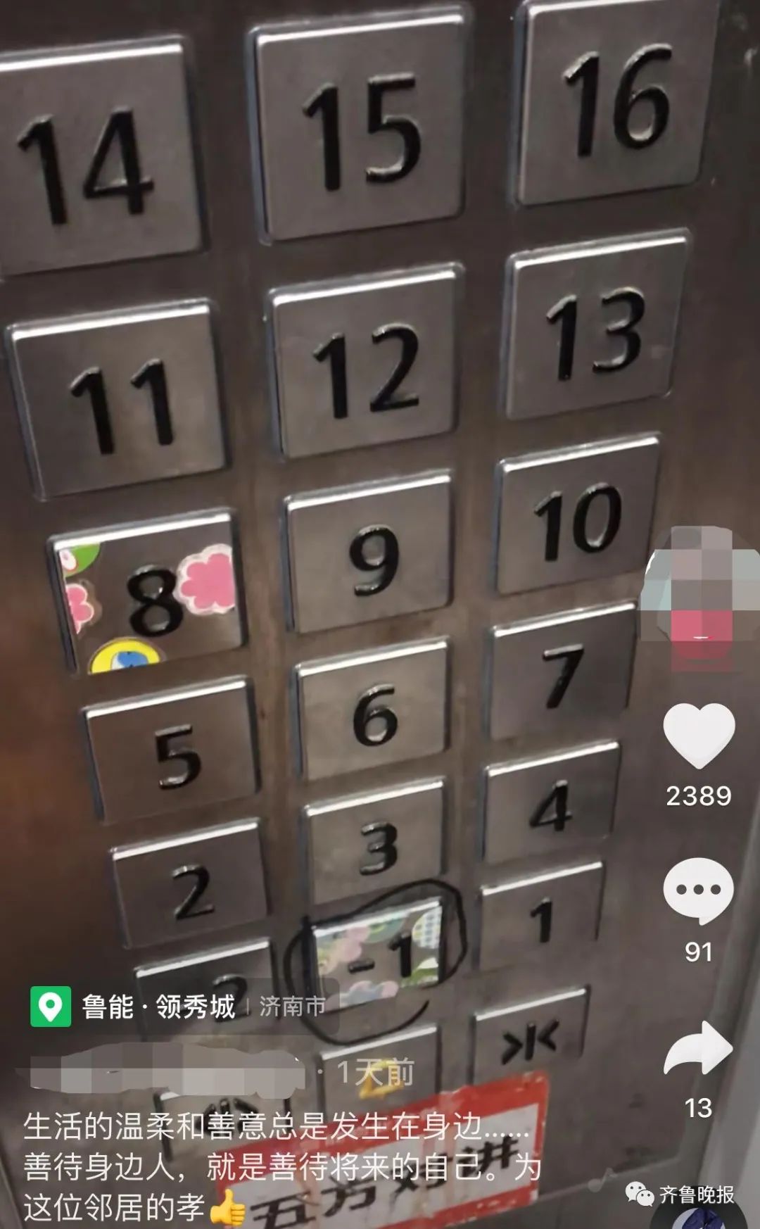 近日,济南一小区电梯里的一幕