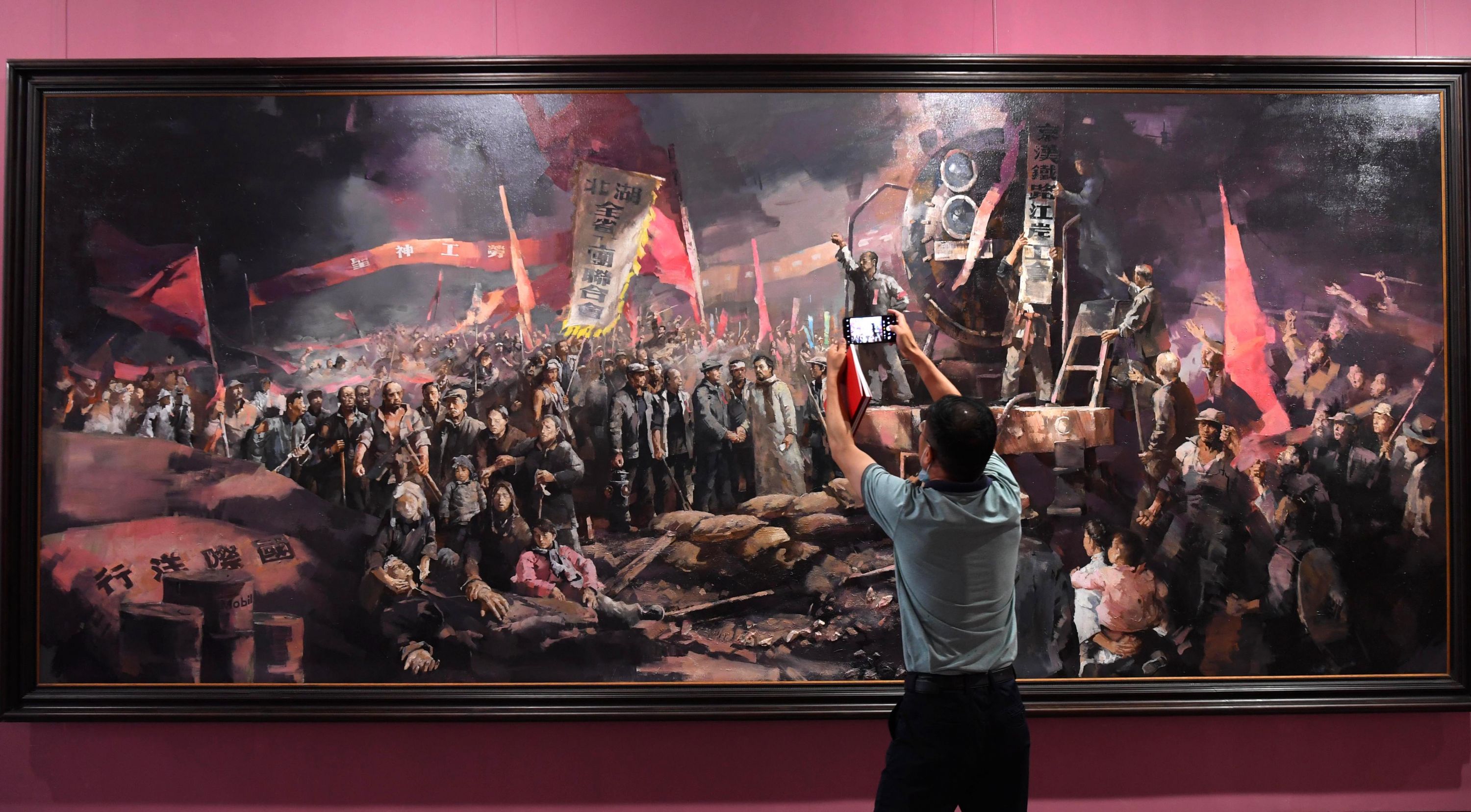 13幅大型党史题材美术作品分别是中国画《曙光——武汉共产主义小组诞生》、布面油画《京汉铁路大罢工》、中国画《收回英租界(汉口“一三惨案”)》、油画《火种——毛泽东在武昌中央农民运动讲习所》、雕塑《中共五大》、中国画《八七会议》、油画《大别雄风——黄麻起义》、水彩画《丰碑永立——湘鄂西苏区洪湖革命根据地》、中国画《武汉“八办”》、铜版画《献金运动》、油画《中原突围》、中国画《千里挺进大别山》、油画《时代之光》。