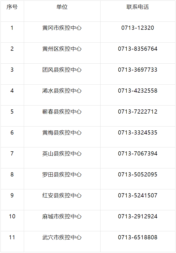 附:黄冈市各县(市、区)疾控中心咨询热线: