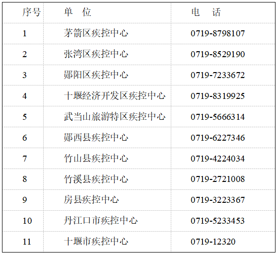 十堰市、县两级疾控中心咨询热线: