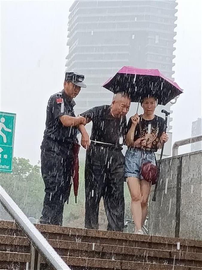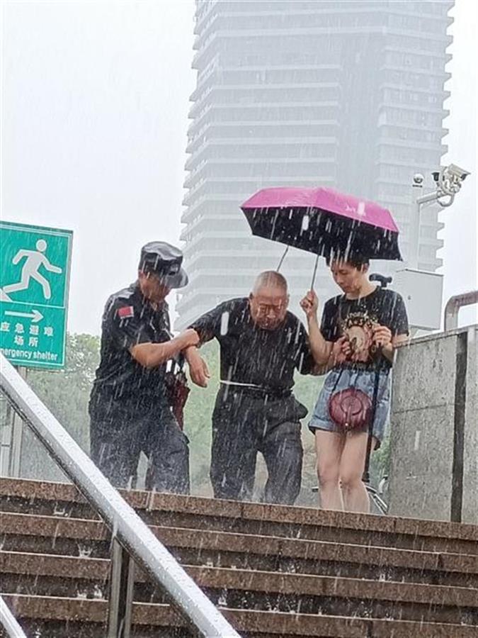 “穿黑色制服的男子左手手腕是挂着雨伞的,但为方便搀扶老人,他干脆淋着雨。”吕女士说,当日上午她出差在武汉办事,当她乘坐地铁2号线从洪山广场D1通道出来时,恰逢室外下起了暴雨,无奈只能在地铁出入口的地方避雨,正好目睹了这暖心一幕,于是赶紧拿出手机拍照记录。
