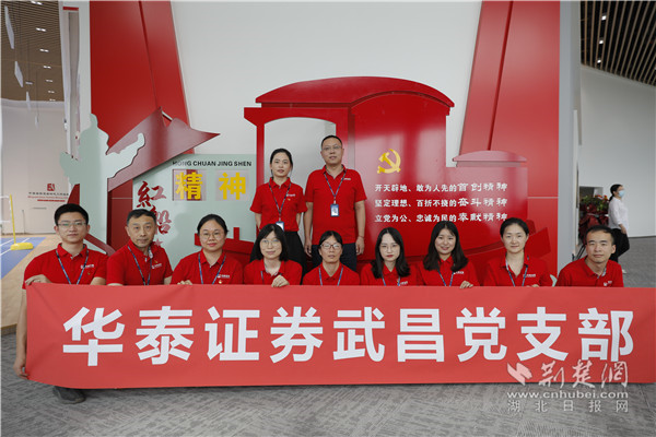 华泰证券武昌党支部在红船前打卡。 通讯员供图