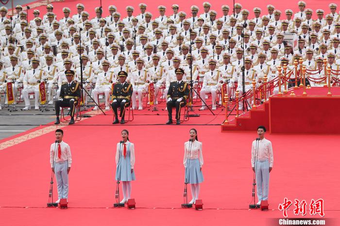 7月1日上午,庆祝中国共产党成立100周年大会在北京天安门广场隆重举行。图为合唱团在大会开始前演唱。 中新社记者 杜洋 摄