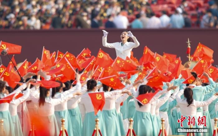 7月1日上午,庆祝中国共产党成立100周年大会在北京天安门广场隆重举行。图为庆祝大会现场。中新社记者 盛佳鹏 摄