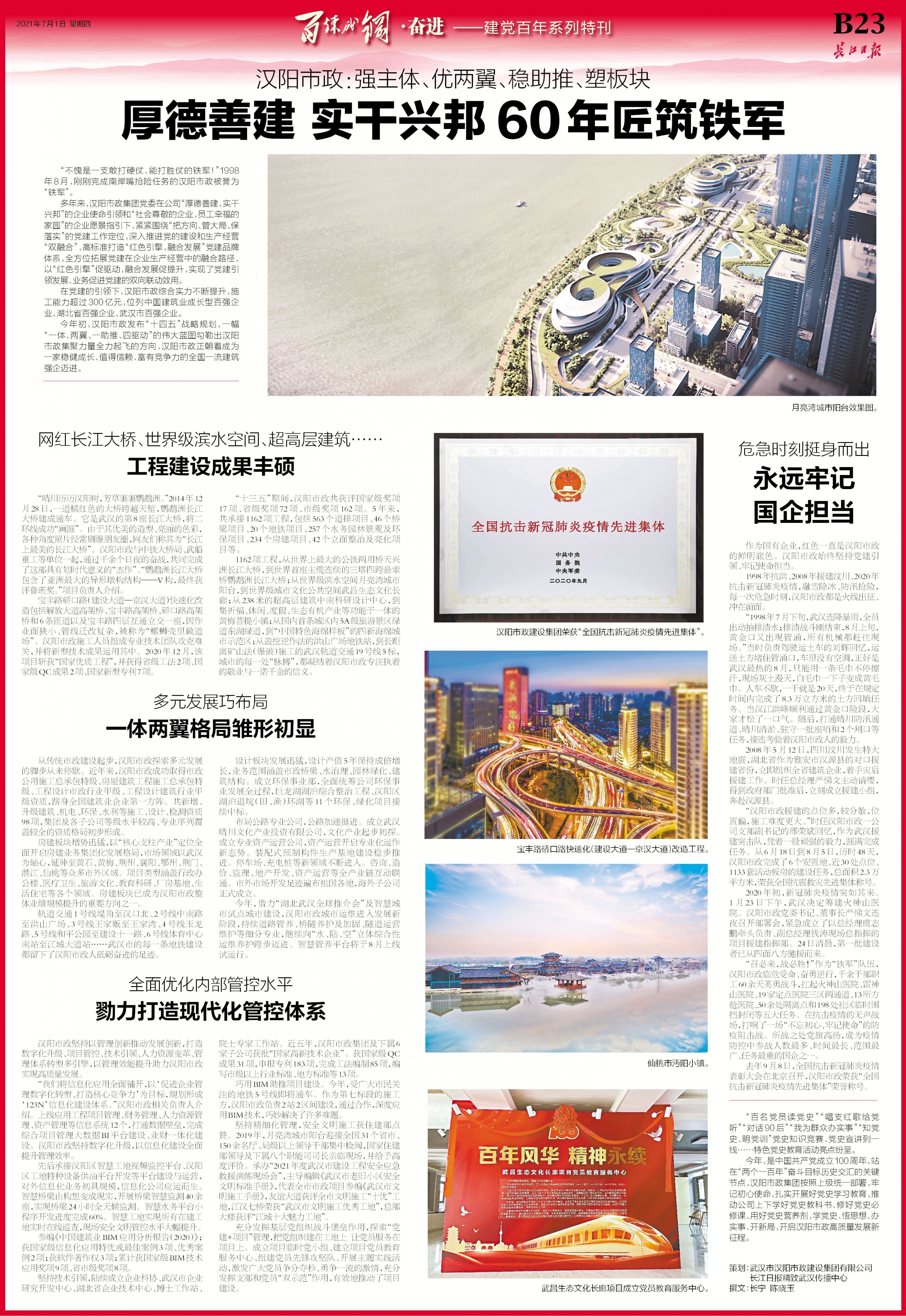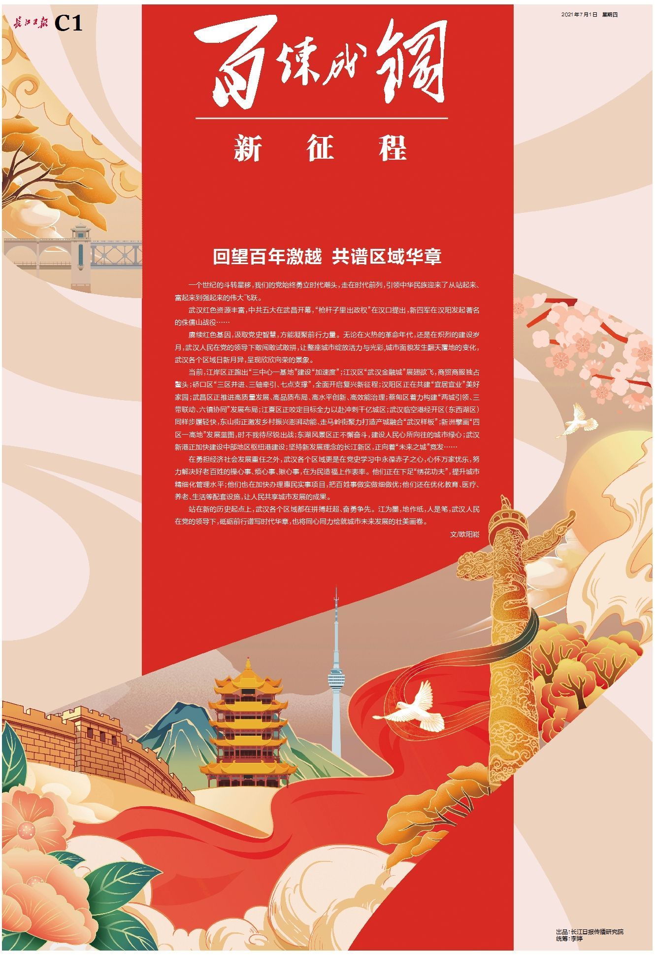 奋斗百年路,启航新征程。值此隆重庆祝中国共产党百年华诞之际,长江日报推出112个版面的特刊《百炼成钢》,多维度展现在党的领导下,武汉各领域的新发展、新变化、新成就。