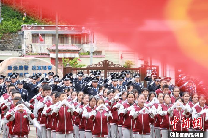 图为色边境派出所移民管理警察在边境山口开展向党旗宣誓活动。 山南边境管理支队供图