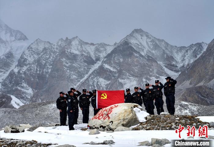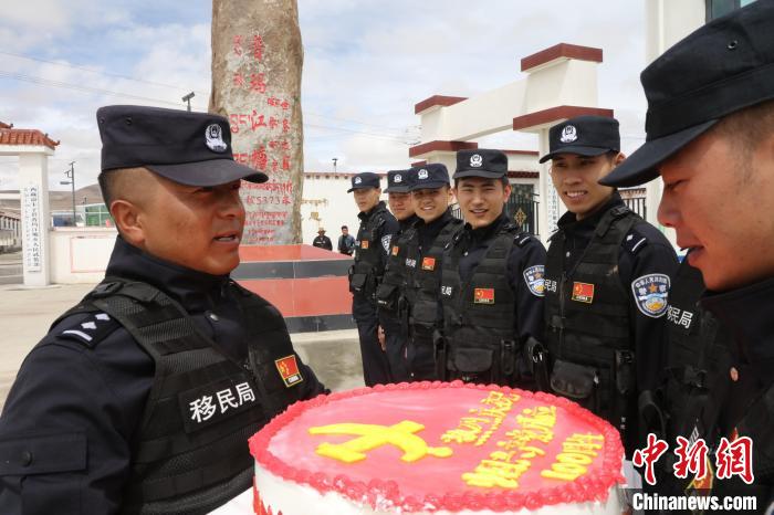 在全国海拔最高的行政乡普玛江塘,边境派出所组织民警在辖区海拔5600米的岗布冰川开展边境巡逻工作,并巧手制作了庆祝党的100年主题生日蛋糕,用实际行动向建党100周年献礼。