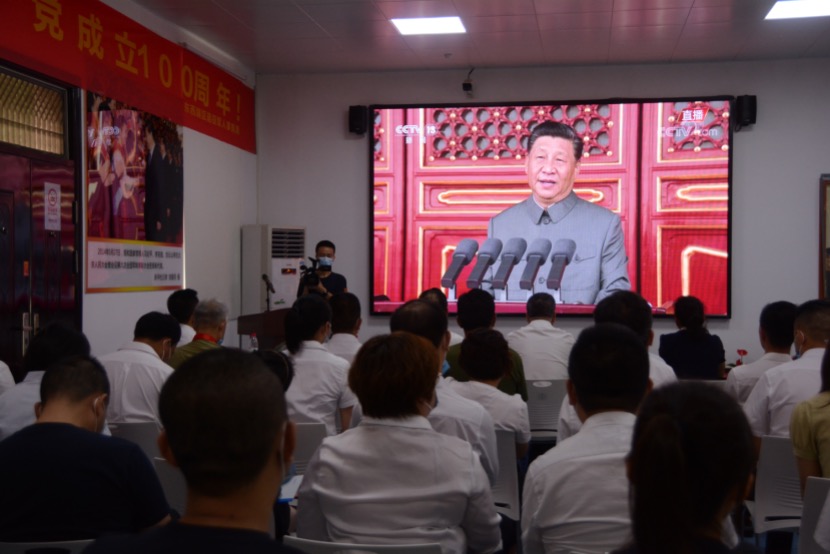 参加人员一起收看庆祝中国共产党成立100周年大会。通讯员朱铭 摄