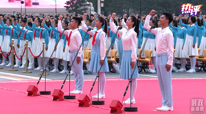 共庆百年华诞盛典上,共青团员和少先队员代表集体在天安门广场前献词,用青春深情礼赞党的百年风华。四位领诵员英姿飒爽,让世界看到新时代中国青年的模样;三千人的大合唱团队,用歌声唱响时代的激昂。