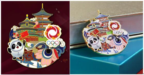 随着东京奥运会一天天临近,中国体育健儿已蓄势待发、信心满满。在中国体育代表团即将出征东京奥运会之际,北京冬奥组委特别推出此枚限量款徽章。徽章以北京和东京两城市的标志性建筑天坛和五重塔为设计元素,北京冬奥会吉祥物“冰墩墩”挥动着鲜艳的国旗。徽章运用了镀金、金葱粉等工艺。本枚徽章限量3000枚。