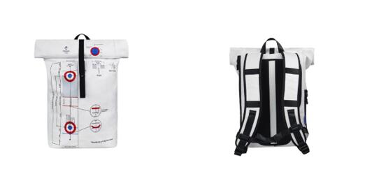 该款背包以北京冬奥会会徽及冰壶赛场为设计元素。包身采用防水、防撕裂的杜邦纸面料,纹理与触感独特,结实耐用。背包里可以放置15寸笔记本电脑,所选用的杜邦纸面料属于环保材料,可以回收再利用,也体现了“绿色办奥”的理念。