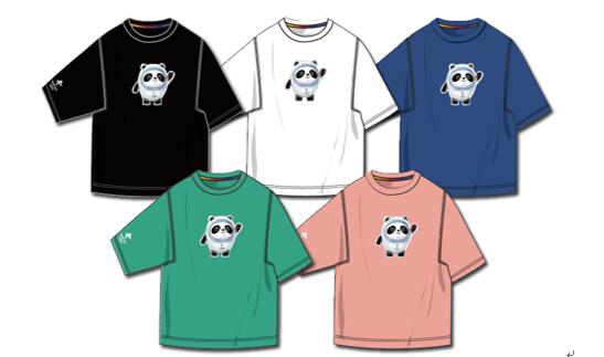 吉祥物半袖衫采用特殊纯棉气流纺面料,版型宽松休闲,使服装更有时尚廓形感。胸前的吉祥物图案采用硅胶烫片印制,图案栩栩如生。