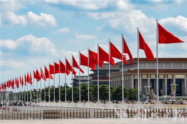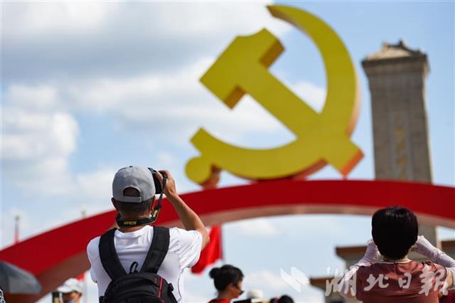 据悉,天安门广场建党百年庆祝景观将向公众开放至7月15日。景观开放期间,从7月3日开始,每天早晨从升旗时段开放,晚上降旗后开始清场。(湖北日报全媒记者 何宇欣 摄)
