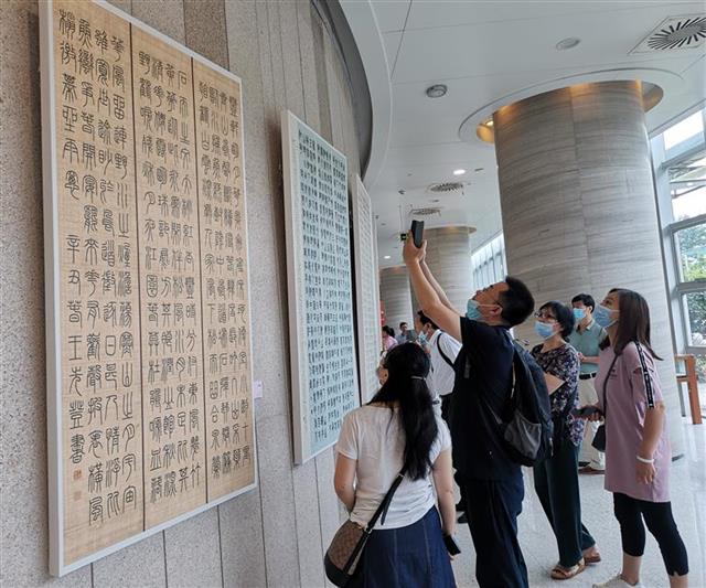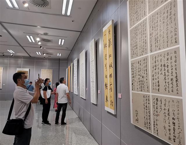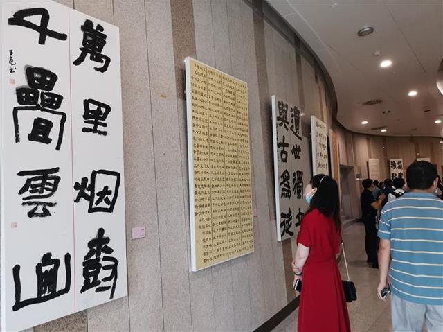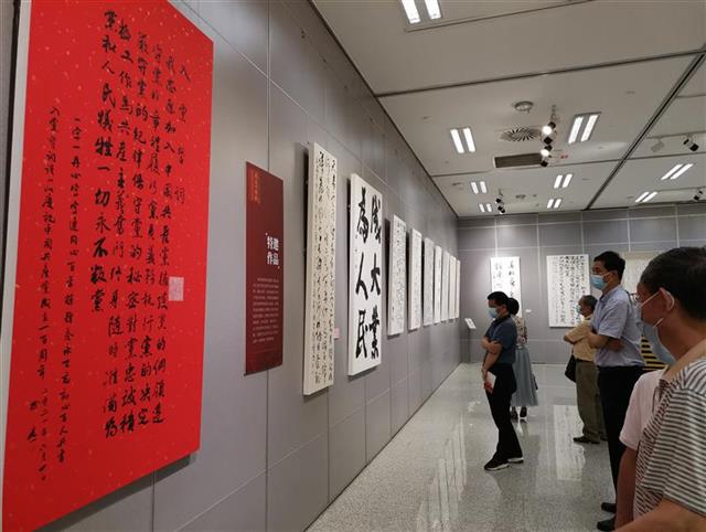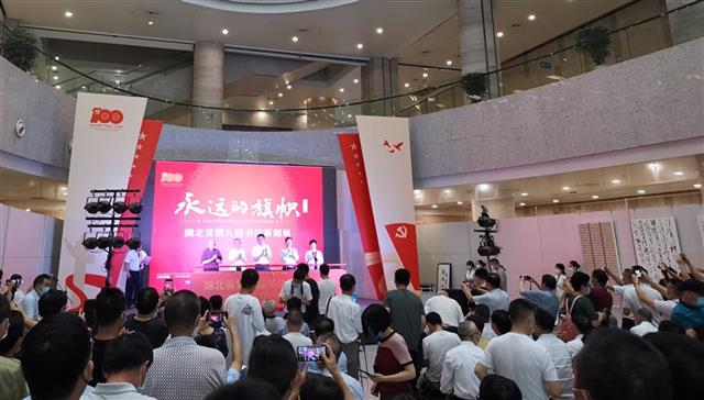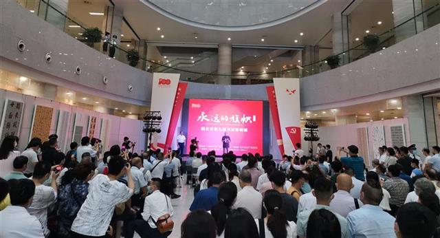 湖北日报讯(记者农新瑜、通讯员王旭)笔歌墨舞歌盛世,荆楚书道庆华诞。7月3日,由中国书法家协会、中共湖北省委宣传部、湖北省文联主办的“永远的旗帜·庆祝中国共产党成立100周年湖北省第九届书法篆刻展”,在湖北省图书馆一楼东厅隆重开幕。