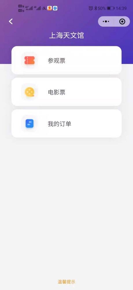 在线购票1、打开微信扫一扫,关注上海天文馆公众号(天文馆二维码展示)