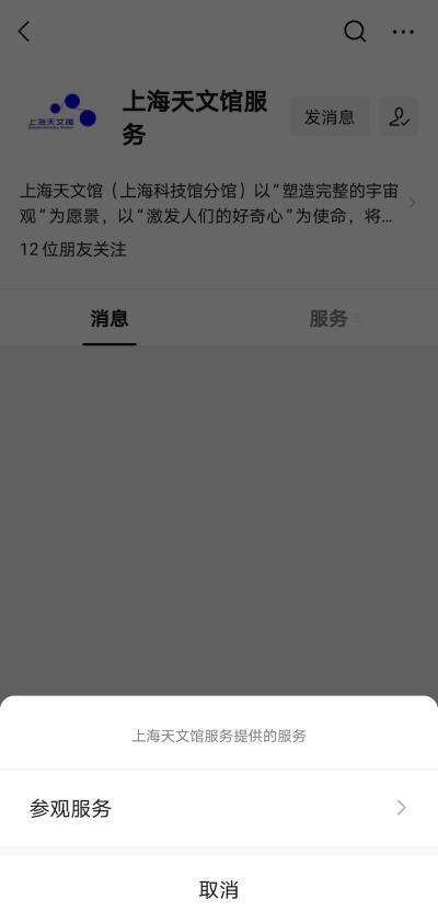 2、 在公众号中点击“参观服务”选择“购票”(购票界面截图)