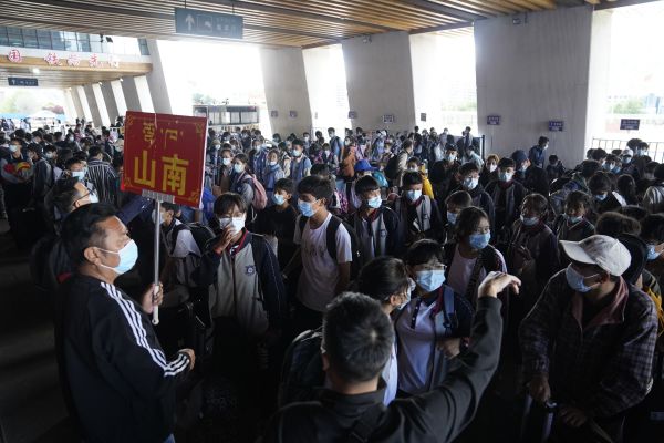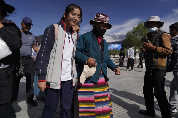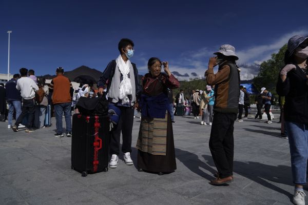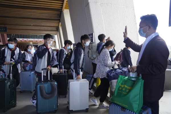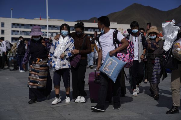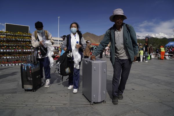 当日下午,不少学生家长身着盛装,手捧哈达,早早等候在拉萨火车站出站口。看到一年未见的孩子走出火车站,家人们迎上去紧紧握住孩子的手。