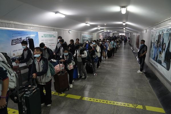 师生平安抵达拉萨火车站。长江日报特派记者彭年摄