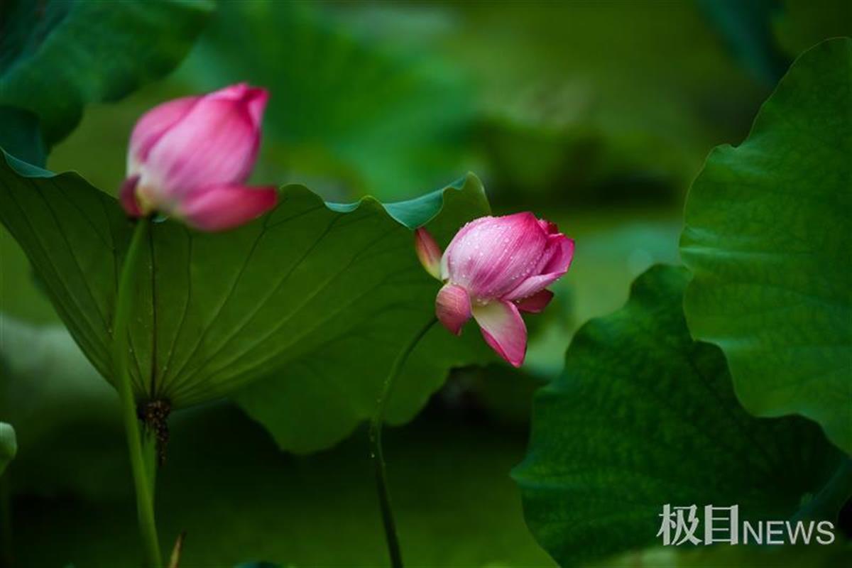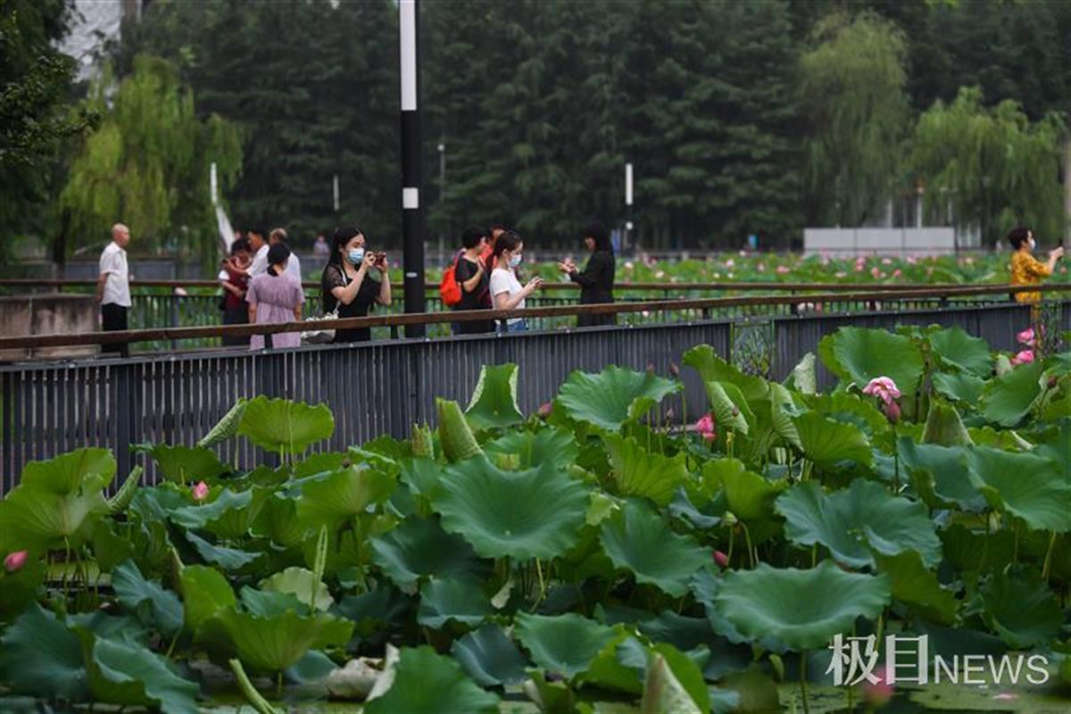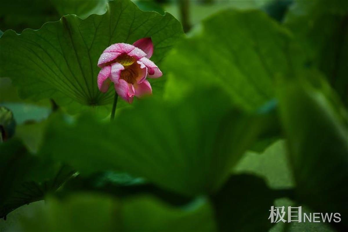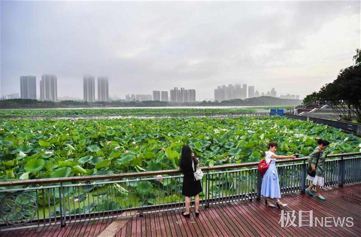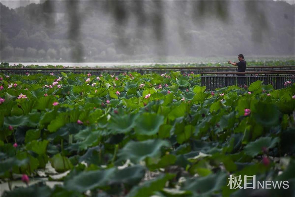 经过大雨洗礼,池塘中的荷花、荷叶沾满雨珠,如刚沐浴过的仙子,娇艳欲滴,别有一方韵味,清风花意浓,惹得游人驻足赏花留影。