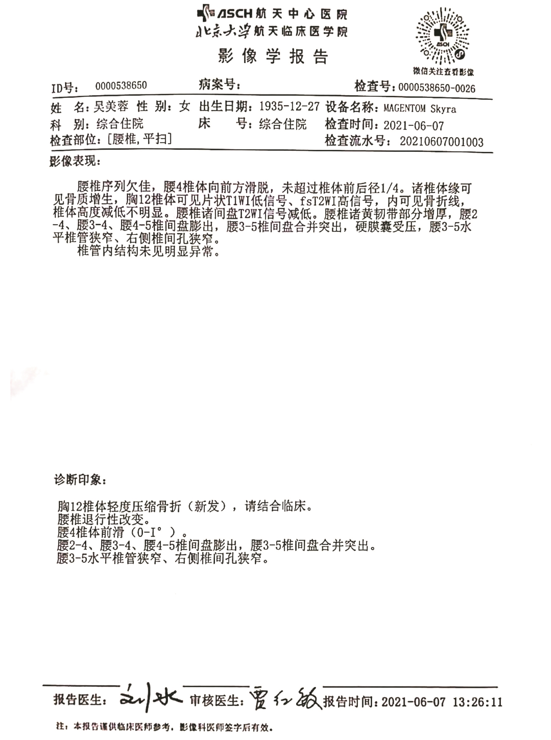 吴美蓉伤情诊断报告