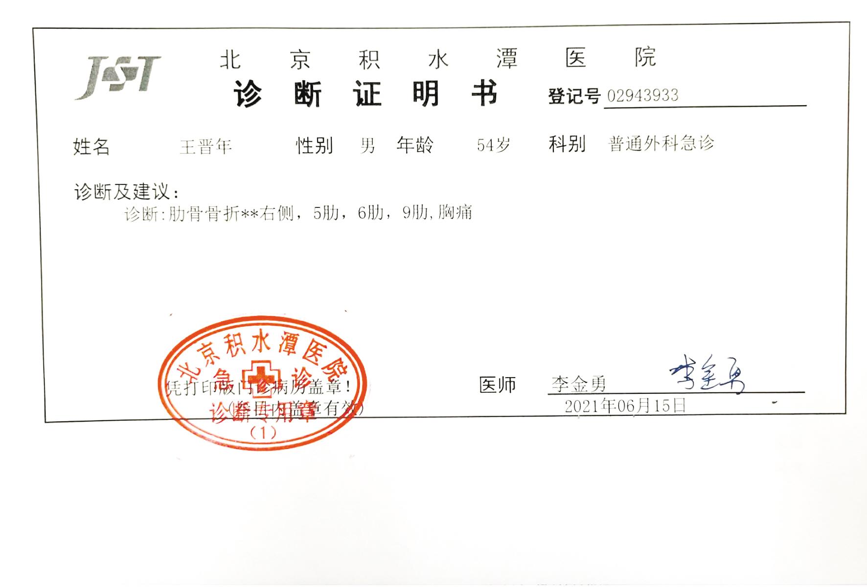 王晋年伤情诊断报告