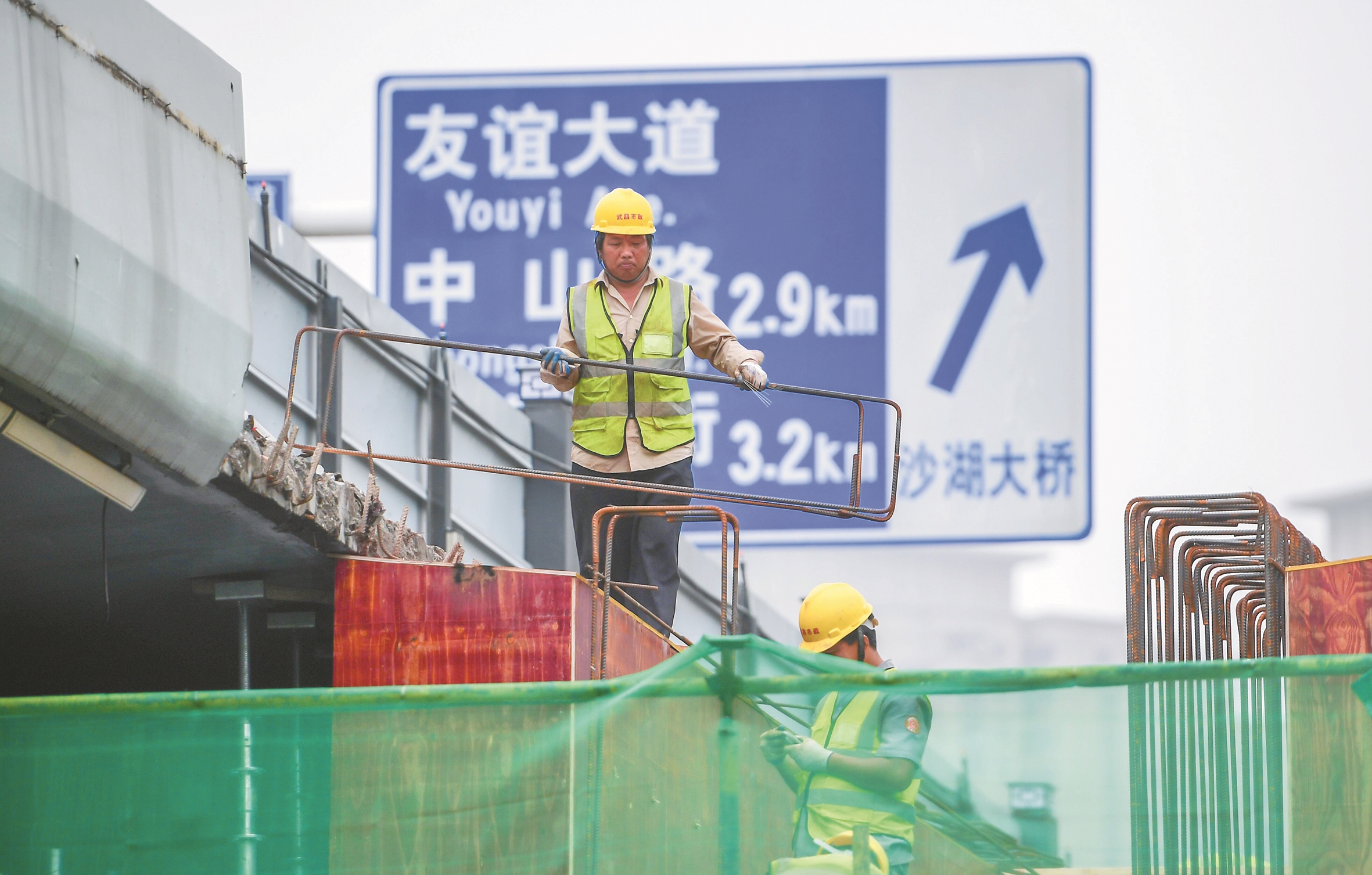 楚天都市报极目新闻讯(记者刘中灿)昨日上午,在武昌沙湖大桥往长江隧道方向靠右边的下行匝道处,绿色的围挡内,几十名工人正在紧张地施工中。